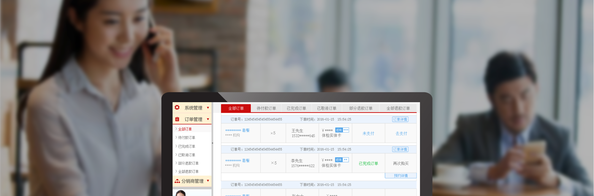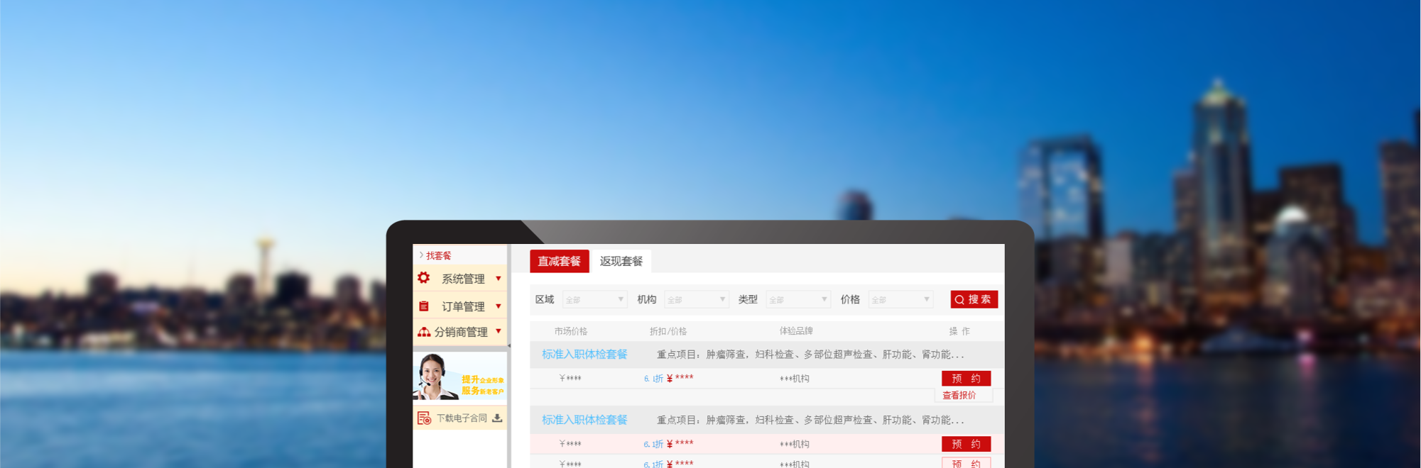 覆蓋全國的體檢資源,定制方便,落單系統(tǒng)功能強(qiáng)大方便,多平臺一體,終于能將業(yè)務(wù)推廣至全國。
